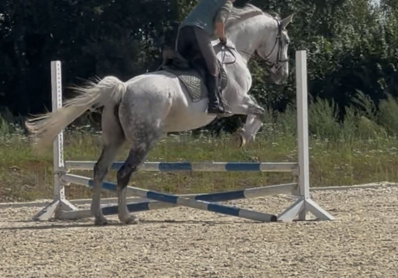 Since I am giving up show jumping, I have decided to sell my 14-year-old Hannoverian mare (Stolzenberg x Lordanos), standing at 175 cm. She is in excellent condition and eager to work. Due to her strong go, especially over fences, she is not suitable as a beginner's horse. I can very well imagine her as a teacher for someone with some jumping experience. She is absolutely reliable at the jump, never refuses, and never runs past. She always finds the right distances, even if they are not perfect. In handling, she is very sweet and people-oriented. Currently, she is barefoot but is also used to full shoes. She is kept in an active stable and is very happy with her turnout. She is also accustomed to being stabled overnight. She has a mild back issue (kissing spines), which does not affect her at all during riding. I purchased her with this condition and have never had any problems. She has competition experience, trained up to S-level show jumping, and has been presented at that level. However, due to her back, I believe she should no longer jump at such heights. Up to A/L level, she has no issues and enjoys it very much. I am explicitly not selling her as a competition horse, as she has already proven herself in that role, but I see her more as a leisure horse for someone who loves her and wants to learn from her, or possibly as a broodmare. A suitable jumping saddle can be purchased additionally for an extra fee. For a trial ride, I charge €35, which will be deducted from the purchase price if you decide to buy. Serious inquiries are welcome. Unreliable or unserious requests will not be answered. Priority goes to the right home over price.