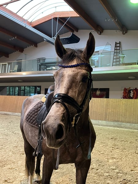3 years old Shu Fu - Calido - Landadel Approximately 16.1 hh Gentle in handling and riding. She has also competed in dressage tests. Hannoverian Suitable for jumping, dressage, and trail riding. She is familiar with all three basic gaits under saddle. She has been ridden both outdoors and in the arena. We have bred her ourselves, and she was born on our farm.