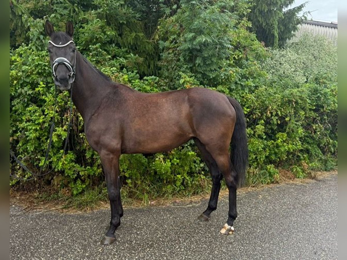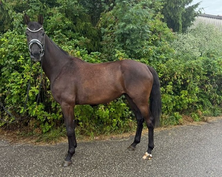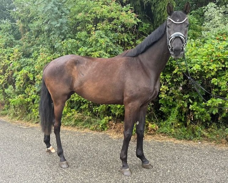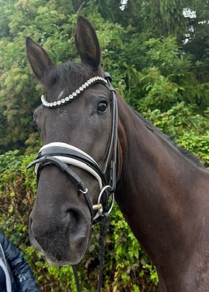 S´Käthle vom Deechmoor ist eine jetzt 4-jährige Stute. Ich habe Käthe im Sommer 2024 in der Weser-Marsch das erste Mal gesehen und mich direkt von Ihrem Charme verzaubern lassen. Im Herbst 2024 kam sie dann zu uns auf den Drackenstein zur weiteren Aufzucht und Ausbildung. Nachdem sie sich eingelebt hatte, wurde sie im Sommer 2025 anlongiert. Nach einer Reifungspause begannen wir mit dem Anreiten von Ihr. Sie war immer sehr motiviert bei der Arbeit und ist ein echtes "Arbeitstier". Über den Winter haben wir sie nochmals Reifen und Wachsen lassen. Anfang 2026 begann dann der "Ernst" des Lebens für Käthe und sie wurde wieder gearbeitet, zuerst an der Longe und jetzt seid ca. 2 Wochen auch wieder unter dem Reiter. Mitte März waren wir mit Ihr in Marbach beim Freilaufwettbewerb, um sie mal ganz ungezwungen und ohne große Aufgabe die erste Turnierluft schnuppern zu lassen. Sie war sehr artig und hat sich tadellos benommen. Sie wurde wie folgt bewertet: Typ: 8, Schritt: 7,3, Trab: 7,8, Galopp: 7,7. Sie ist als Zuchtstute im Hauptstutbuch des Baden Württembergischen Zuchtverbandes eingetragen. Auch beim Freispringen (auswärts), auf einem fremden Betrieb im Februar hat sie sich sehr souverän gezeigt. Käthe ist angeritten und läuft artig in der Halle in allen drei GGA. Lenken ist kein Problem. Gas und Bremse funktionieren. Sie war an der Hand schon mit einem Begleitpferd im Gelände, was sie auch wirklich super gemacht hat. Sie lebt bei uns in einer Stutenherde mit ca. 10 Tieren, ist eher ranghoch. nachts hat sie eine Box und am Tag steht sie in der Herde auf dem Paddock oder auf der Weide. Schmied war sie immer regelmäßig, ebenso ist sie entwurmt und vollständig geimpft. Aufgrund Ihrer Größe sehen wir sie als Damen und/oder Juniorenpferd. Für Kinder ist sie aufgrund Ihres Alters noch nicht geeignet. Für ein Kennenlernen mit evtl. Probereiten wird eine gebühr in Höhe von 25 Euro sofort und in bar fällig.