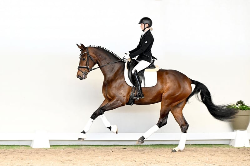 La Daisy, a four-year-old mare with an ideal frame, leaves nothing to be desired. Equipped with three outstanding basic gaits, she moves with elasticity through her entire body and impresses with natural impulsion, expression, and a clearly uphill tendency—exactly what one looks for in a modern dressage horse. For the future rider, this is a horse destined for higher levels. La Daisy possesses all the attributes required for a successful career in advanced sport, presenting herself with brilliance, charm, and a presence that captivates from the very first moment. Beyond her movement, it is especially her attitude that stands out: friendly, positive, and always focused on her rider. She is a horse that wants to work, thinks along, and gives her rider a feeling of confidence, harmony, and ease from the very beginning. Her pedigree is equally compelling: her sire La Vie represents international success, modern type, and exceptional willingness to perform. Through her damsire Desiderius L, she carries proven De Niro–Donnerhall blood, further reinforced by Donnerball as her granddam’s sire—a direct son of the legendary Donnerhall. This double genetic reinforcement of Donnerhall is no coincidence, but a true mark of quality. For decades, this line has stood for rideability, collection ability, and a natural talent for the highest levels of dressage—traits that La Daisy already demonstrates today, making her an exceptionally interesting prospect for ambitious riders. La Daisy combines everything one could wish for in a future top horse: quality of movement, strength of character, and an outstanding genetic foundation—a horse that not only impresses, but truly offers perspective.