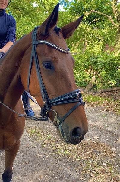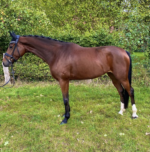 🍀Aufsteigen, los reiten, wohlfühlen 🍀 Diese 4-jährige Stute von Dancier Gold x Benicio ist jetzt schon trotz ihres jungen Alter ein absolutes Verlasspferd. Aktuell 1,69m groß, allerdings noch voll im Wachstum. Ganz am Anfang ihrer Ausbildung begeistert sie mit drei guten Grundgangarten, wobei der Schritt besonders hervorzuheben ist. Zuhause springt sie spielerisch fliegende Galoppwechsel und bei ihrem ersten Turnierstart glänzte sie mit absoluter Gelassenheit. Eine perfekte Stute für den Umsteiger oder als Familienpferd. Schmiede und verladefromm. Kennt Herdenhaltung und Schrittrunden bzw. kleine Ausritte. Ein sehr guten TÜV aus 2024 inkl. Rücken ist vorhanden. Direkt vom Züchter. Weitere Fragen und Videos unter 0170/3271419