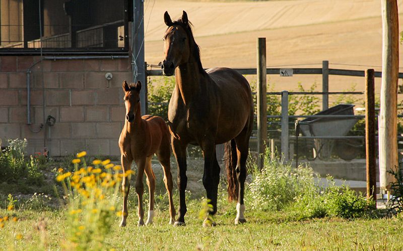 Cinque Stelle S da Freigeist a. d. Londontimes Lola S v. Londontime Cavalla Hannoverana | Baia | Nata il 15.06.2022 Qui il nome è un programma. Questo bellissimo e vivace puledra porta con sé una qualità di movimento eccezionale. Leggera, con molta energia, mostra una grande dinamica di movimento con una eccellente tendenza a salire. Con molta spinta da dietro, fluttua sul campo. Ha molta energia e si diverte a muoversi. Tutti e tre i passi fondamentali sono di qualità straordinaria. Non solo si muove magnificamente, ma è anche assolutamente lucida e ha già imparato molto. Portarla al pascolo o fare una passeggiata funziona con lei a un anno meglio che con molti puledri di tre anni. Il maniscalco lavora i suoi zoccoli con naturalezza con il flessibile. Somministrazione di medicinali, vaccinazioni, cura e assistenza fisica - tutto senza problemi. Questo puledra tipica è intelligente, sicura di sé e affettuosa verso le persone. È cresciuta da noi in azienda. I cavalli sono in branco durante l'estate 24/7 al pascolo e in inverno in un'adeguata gestione di gruppo. Gestiamo una piccola allevamento. Tutti i cavalli hanno un legame familiare, sono affettuosi verso le persone e vengono allevati e addestrati con molta conoscenza e cuore. I puledri vengono svezzati in modo delicato e attento, l'educazione e l'addestramento avvengono con la consapevolezza del comportamento equino e dell'apprendimento, con tanto amore e il minor stress possibile. Lo sviluppo della salute viene monitorato fin dall'inizio e costantemente con un occhio vigile, per poter correggere eventualmente in anticipo. Un'alimentazione adeguata, sverminazione regolare e vaccinazioni sono per noi una cosa normale. Il padre Freigeist (da Foundation) appartiene al lotto di stalloni giovani del Landgestüt della Bassa Sassonia ed è stato recentemente premiato con il premio Weltmeyer. Ulteriori informazioni sull'allevamento e la crescita possono essere trovate sul nostro sito web schroetershof.de o contattateci telefonicamente.