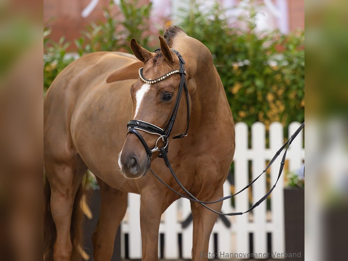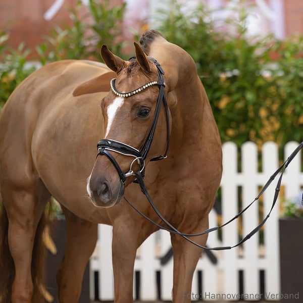 Tiny Temptation, primée Vet+, se distingue par de nombreux atouts. Outre une qualité exceptionnelle de ses allures de base, elle possède également un potentiel de saut supérieur à la moyenne sous la selle. Elle appartient à une lignée performante, dont font partie notamment le hongre stallion agréé Fortune Cookie par Fürstenball (DRE : L) et Dreamboy par Desperados (DRE : S** avec Mario Hinz), ainsi que de nombreux chevaux de vente et filles prämierte. Prime : Vet+ 2e génération Chevaux de vente : First Lady par Franziskus (FoVA 2016 : 17 000 €). Filles prämierte : HannPrA Fashionette par Fynch Hatton. 3e génération Chevaux de sport en dressage : Dreamboy 54 par Desperados (DRE : S** avec Mario Hinz, FoVA 2010). Chevaux en épreuves de développement en dressage : HannPr Freixenet/Freixenet 88 par Fürstenball (DRE : M avec Inga Nau-Messelis, FoVA 2017 : 43 000 €, Herwart von der Decken-Schau Verden 2020) ; hongre stallion agréé Fortune Cookie 8 par Fürstenball (DRE : L, MS-Handorf 2018, FoVA 2016 : 18 500 €). Chevaux de vente : Vermentino par Vitalis (FoVA 2021) ; Valentin par Vitalis (FoVA 2020 : 52 000 €) ; Final Hope par For Romance II (FoVA 2019) ; Valentin par Vitalis (VA 2022) ; Total Gut par Totilas (FoVA 2018) ; Fienchen par Fürstenball (VA 2021) ; Tribun par Top Gear (FoVA 2017) ; Ferrero Küsschen par Franziskus (FoVA 2016) ; First Kiss par Fürstenball (FoVA 2014) ; HannPr Baroness/Bahamas M par Benicio (VA 2018). Filles prämierte : HannPrA Jolie La Belle par Jovian ; HannPr First Lady/First Lady M 4 par Fürstenball (Herwart von der Decken-Schau Verden 2016) ; HannPr Seniorita/Seniorita M par Sir Donnerhall I (Herwart von der Decken-Schau Verden 2014). 4e génération Chevaux de vente : Estremadura par Escudo I (FoVA 2001) ; Star Cloud par Saint Cloud (VA 2003). 5e génération Chevaux de saut en sport : Daytona 75 par Dayton Sitte (SPR : international 1,30 m avec Jannick Schubert) ; Relevant 8 par Ramiro's Bube (SPR : 1,40 m avec Marcel Schneider) ; Cleo/Cleo 237 par Chacco-Blue (SPR : 1,30 m avec Marlen Weber) ; Fritz 512 par Flemmingh (SPR : 1,30 m avec Sebastian Otten) ; Argentario 3 par Argentinus (SPR : M avec Stefan Rick). Chevaux en épreuves de développement en dressage : Hongre non débourré/Ars Vivendi 9 par Argentinus (DRE : L). Chevaux en épreuves de développement en saut : Calvira 3 par Calvaro Z (SPR : L) ; Acco 8 par Acord II (SPR : L) ; Amelie 49 par Acord II (SPR : L). Mère : Symphonie Prämierung : 1xIa. ZL : 6/7 Grand-mère : Seniorita Prämierung : 1xIa. ZL : 6/5 ZSP : Épreuve de terrain pour chevaux de sport - Trot 7,50 ; Galop 7,00 ; Pas 7,50 / Moyenne de la capacité de saut 8,00 Résultats en compétition : RPF : sans classe, 1/4. Mélie 49 par Acord II (SPR : L). Mère : Symphonie Prämierung : 1xIa. ZL : 6/7 Grand-mère : Seniorita Prämierung : 1xIa. ZL : 6/5 ZSP : Épreuve de terrain pour chevaux de sport - Trot 7,50 ; Galop 7,00 ; Pas 7,50 / Moyenne de la capacité de saut 8,00 Résultats en compétition : RPF : sans classe. Ce cheval est un cheval de vente de la vente aux enchères de Verden et sera mis en vente en ligne le 25 janvier 2026. Du 12 janvier au 25 janvier, il sera visible et testable chaque jour lors de l’entraînement public. La mise à prix de départ lors de la vente est de 8 000 euros.