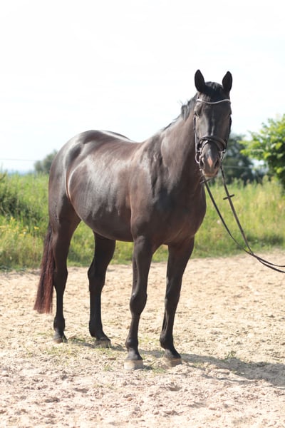 A fantastic young prospect with great potential for further training. Although this young black mare has not yet been shown in competitions, she is already attracting attention. Viscora is 5 years old and descends from Viscerado x Stalypso. She measures approximately 17.2 hh and has been lightly backed due to her growth, and she has been progressing with patience and calmness. She is still at the beginning of her training as a show jumper. She impresses with her size, presence, and quality! She is solidly trained in dressage and consistently shows motivation and a willingness to learn. Viscora is delicate and extremely pleasant to ride. A promising, sensitive young mare for further sporting endeavors. A horse that simply brings joy and inspires hope for a wonderful future together. She is accustomed to training in unfamiliar environments but needs some time to settle in fully. With her very sensitive and somewhat reserved nature, she requires an experienced, empathetic rider who can provide her with security. Ideal for riders seeking a young horse to develop and grow together. The mare is unspoiled and possesses excellent potential for her future sporting career. Viscora is ready for an ambitious show jumper—preferably in caring, supportive hands! This wonderful Hanoverian mare is now looking for a suitable home where she can be further developed and showcase her qualities. Additional videos available upon request!