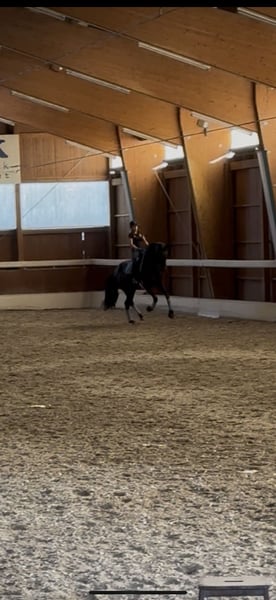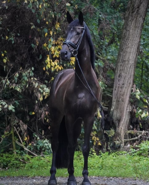 For sale is a tall, 5-year-old Hanoverian mare born in April. San Bellissima was acquired from the breeder as a foal, grew up in a herd environment for two years, and has since been gently backed and further trained. In the last competition season, she gained her first experience in the DPA and received high marks. An absolutely uncomplicated horse at competitions! Naturally, she is farrier- and loading-friendly. With a height of approximately 1.75 meters (17.1 hh) and a dark bay coat, she is a striking eye-catcher with above-average conformation. X-rays were taken at age 3 before starting her under saddle. More pictures and videos are available upon request!