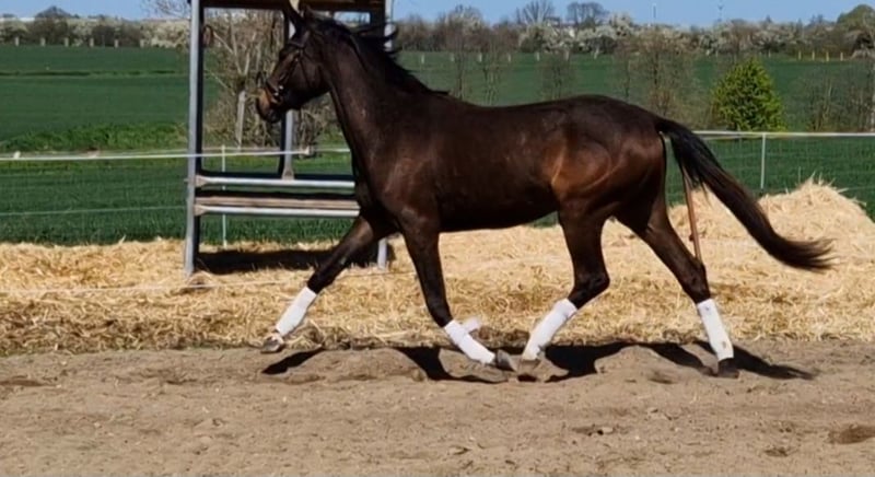 3-year-old Hanoverian mare out of a Hohenstein x world fame mare and sire Vivaldos. Raw. Currently about 1.60 tall and is growing. Docile, playful and determined. The pedigree includes Krack C, Desperados, Caprimond and Weltmyer. Information about the mother strain: In the dam line, the performance-tested and strong Trakehner blood. Combined with world fame and world meyer.