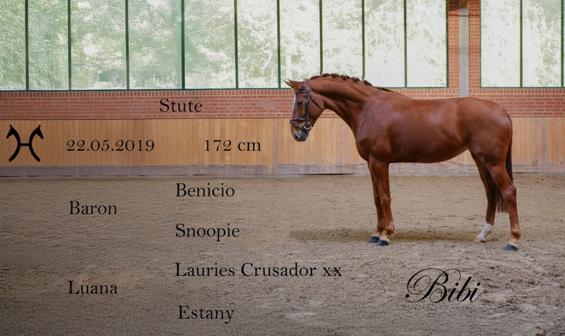Diese wunderschöne Fuchsstute wurde im Jahr 2019 geboren und besticht durch ihr freundliches Wesen und ihre beeindruckende Erscheinung. Mit einem Stockmaß von ca. 172 cm bietet sie eine beeindruckende Präsenz und ist perfekt für alle, die ein zuverlässiges und sicheres gehobenes Freizeitpferd suchen. Sie ist vielseitig einsetzbar, lernwillig und zeigt im Umgang sowie im Gelände ein ruhiges und ausgeglichenes Verhalten. Sie kennt Sprünge, die Sie super souverän meißtert. Auch das Gelände macht ihr unheimlich viel Spaß, sodass man mit ihr alleine, als auch mit weiteren Pferden viele Stunden im Gelände genießen kann! Sie steht super fein an den Hilfen, sodass man Sie ganz entspannt ohne viel Druck reiten kann! Besser kann es nicht gehen! Die Hannoveraner Stute ist gesund, regelmäßig geimpft, wurde liebevoll gepflegt und schonend angeritten, sodass Sie keine schlechten Erfahrungen gesammelt hat. Die Besitzer sind gleichzeitig auch Züchter, somit wurde Sie nicht weitergereicht und steht in erster Hand! Röntgenbilder sind vorhanden und können auf Wunsch sehr gerne verschickt werden! Bei Interesse oder für weitere Informationen stehe ich Ihnen gerne zur Verfügung. Eine Besichtigung und Probereiten sind nach Vereinbarung sehr gerne möglich.