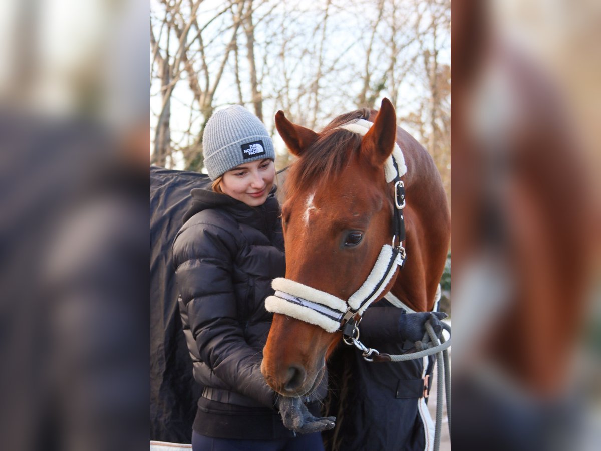 Zum Verkauf steht eine 2018 geborene, etwa 1.62 m große Dunkelfuchsstute. Die junge Dame besticht nicht nur mit ihrer wunderhübschen Aufmachung, sondern auch mit ihrem liebenswerten Charakter. Im Umgang ist sie absolut unkompliziert, lässt sich auch von Kindern problemlos händeln und liebt es, wenn ihr jemand Aufmerksamkeit schenkt. Auch unter dem Reiter lässt sie keine Wünsche offen, läuft brav in allen drei GGA, springt bereits Wechsel und wird derzeit von einer Jugendlichen geritten. Abstammend nach Quantensprung x Rohdiamant x Brentano II lässt auch ihr Pedigree keine Wünsche offen und ist demnach auch in der Zucht denkbar. In der Gruppe ist sie absolut verträglich und steht derzeit in einer Stutenherde. Natürlich kennt sie den Hufschmied (derzeit vorne beschlagen), den Tierarzt sowie das verladen und fahren. Wer auf der Suche nach einem idealen Jugend-, oder Damenpferd ist, wird in dieser sympathischen Stute bestimmt fündig!