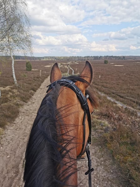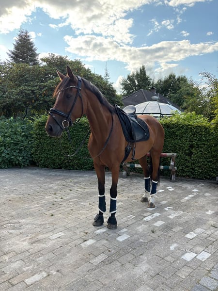 For sale is this lovely 8-year-old Hanoverian mare, who impresses with her excellent basic gaits and great presence. ✨ Dressage: -Very good, elastic basic gaits -Expressive front leg with plenty of shoulder freedom -First heavy lessons learned -Motivated, learns quickly, and brings a lot of joy 🤍 Character: -Absolutely well-behaved, uncomplicated, and reliable -Suitable for children, beginners, or anxious riders In one hand since the age of 3/4 years (leisure rider). Private sale, also available with accessories. 🌿 Additional advantages: -Knows trail rides and is always calm in the field -Reliably jumps smaller courses with secure flying changes 🩺 Health: -Always healthy, no restrictions, current X-rays are available. An ideal horse for amateur riders who want to ride dressage (and jumping) at a good level while also valuing a balanced, reliable partner.
