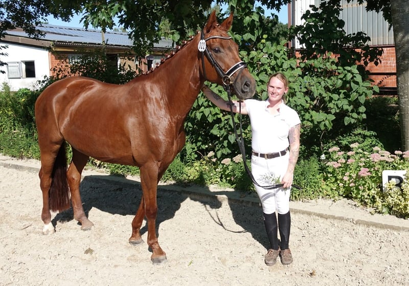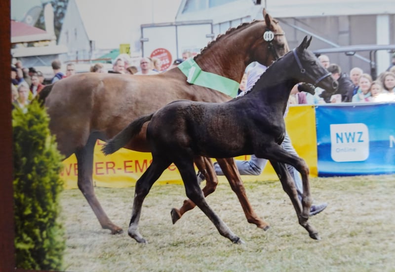 FARINA is being offered as a broodmare, having proven herself over several years as an excellent producer with outstanding maternal qualities. The nine-year-old mare comes from a distinguished dam line, which has produced numerous auction horses and state premium mares. Last year, she served as the dam of the stallion champion foal "DER KRONPRINZ" at the LANDTAGE NORD WÜSTING. Her pedigree includes well-known sires such as "For Romance I," "Don Schufro," "Wolkentanz," and "Lanthan." She has completed her performance test with an overall score of 7.67. FARINA has been awarded the prestigious Hanoverian Premium Mare title. WFFS testing has also been carried out—she is not a carrier of the tested genetic trait. Handling and hoof care have been straightforward and problem-free. She is currently in foal for the second time to the stallion DER KÖNIG (Sprehe Stud). Expected foaling date: approximately June 14, 2026. Location: Dornumersiel - Wilhelminenhof. A sale is planned by the end of March!