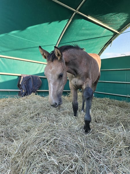 🐴 Hannoveraner Stutfohlen zu verkaufen – Erstes Fohlen aus liebevoller Zucht 🐴 Als neue Züchterin präsentiere ich voller Stolz mein allererstes Fohlen – eine aufgeweckte, neugierige und lernfreudige Hannoveraner Stute. Schon jetzt zeigt sie viel Vertrauen zum Menschen: Sie trägt das Halfter ohne Widerstand, lässt sich ruhig führen, gibt brav alle Hufe und kennt das „Hufe geben“ bereits auf Kommando. 🌟 Abstammung Mutter: Cornetta (Hannoveraner, Contendro I–Linie) Cornetta geht direkt auf den weltbekannten Contendro I zurück – einen der vielseitigsten Vererber seiner Zeit, der sowohl im Springen als auch in Vielseitigkeit und Dressur internationale Bedeutung hat. Von ihrer Mutter bringt Cornetta Intelligenz, Nervenstärke und Leistungsbereitschaft mit – Eigenschaften, die sie an ihr Fohlen weitergibt. Vater: Nairobi de Muze (BWP) Nairobi de Muze ist selbst erfolgreich im internationalen Springsport bis 1,55 m. Er führt die Linien von Elvis ter Putte und Diamant de Semilly – weltberühmte Hengste, die für Sprungkraft, Athletik und modernen Typ stehen. Damit vereint dieses Fohlen bewährte Leistungslinien aus Hannoveraner- und belgischer Zucht. 🌱 Aufzucht & Charakter Da es mein erstes Fohlen ist, lege ich besonders viel Herzblut in ihre Aufzucht. Sie wird liebevoll im Familienumfeld groß, mit viel Kontakt zum Menschen. Ich habe mit der Desensibilisierung begonnen und möchte sie bis zum sechsten Lebensmonat so vorbereiten, dass sie auch den Anhänger ruhig kennenlernt. Sie ist aufmerksam, freundlich, schnell lernend – eine kleine Stute, die dem Menschen gerne vertraut. 💡 Für wen geeignet? Für Züchter, die ein Nachwuchsfohlen mit internationalem Spitzenpedigree suchen. Für Reiter, die frühzeitig ein kluges und lernfreudiges Jungpferd begleiten möchten. Für alle, die sich ein sympathisches Fohlen mit starken Blutlinien und liebevoller Aufzucht wünschen. 📩 Bei Interesse oder Fragen freue ich mich sehr über eine Nachricht – und darauf, mein Herzensfohlen persönlich vorzustellen.