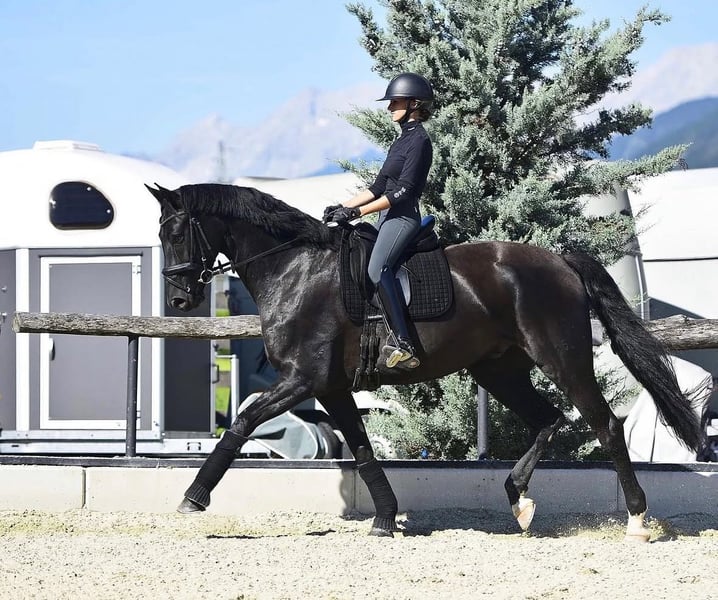 For sale is my beautiful black gelding, who captivates with his loving and affectionate nature. It is with a heavy heart that I am placing him in caring, loving hands due to lack of time. He has been in my possession since foalhood and has been trained very gently. In dressage, he has achieved numerous placings in classes A and L, consistently impressing with his lesson accuracy and expressive appearance – a true ribbon winner in these classes. Recently diagnosed with asthma, he requires a suitably adapted environment (dust-free housing, plenty of fresh air, etc.), which I am unable to provide for him long-term. My wish is for him to find a caring forever home where he is seen as a partner, not just a sport horse.