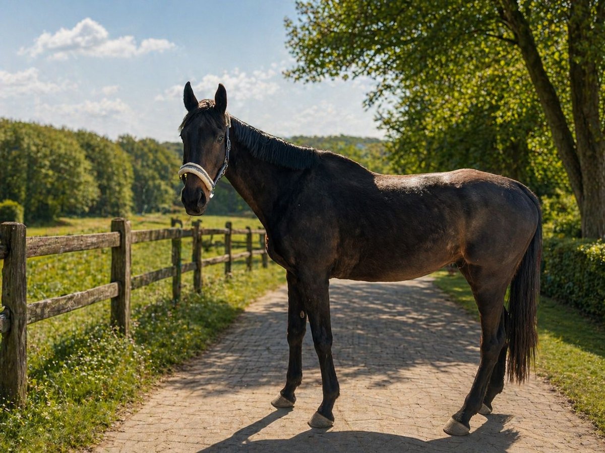 Ich hätte einen 11 jährigen Hannoveraner Wallach. Er ist ca. 1,80 m groß und ein absolut lieber Kerl. Er ist sehr menschenbezogen und im Umgang wirklich angenehm. Dennoch habe ich leider immer mehr fest, dass es zwischen uns nicht ganz passt. Aktuell ist er nicht geritten, da er Gurtzwang hat und hier noch weiter daran gearbeitet werden muss. Deshalb wird er momentan hauptsächlich vom Boden aus beschäftigt. Im Gelände war er zuvor brav, geht jedoch nicht alleine raus und braucht hierbei Sicherheit durch ein zweites Pferd sowie einen erfahrenen Reiter, da er unsicher sein kann. Auf dem Platz zeigt er sich grundsätzlich lernwillig. Er ist kein Anfängerpferd. Der Schmied ist problemlos, er steht aktuell im Offenstall und soll auch weiterhin so gehalten werden. Da er boxenhaltung nicht mag Ich wünsche mir für ihn ein passendes Zuhause mit Erfahrung, Zeit und Geduld, um weiter mit ihm zu arbeiten.