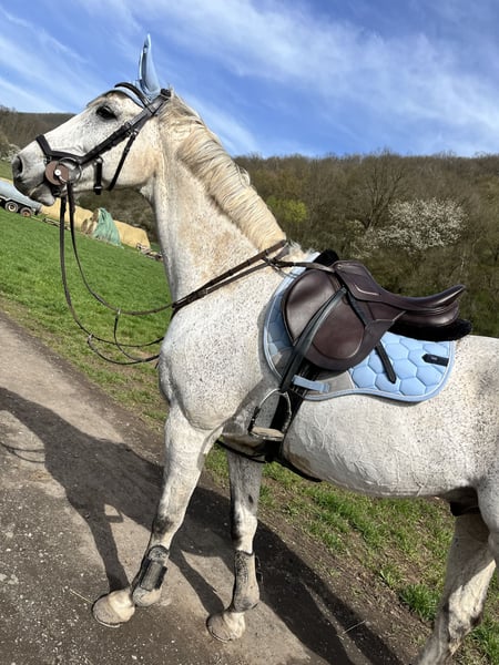 13-Year-Old Hanoverian Gelding Seeks Forever Home I am looking for a forever home for my gelding where he can be the number one. He has been placed up to L-level show jumping. He is truly a treasure to handle. He loves trail rides (preferably at a faster pace), goofing around, groundwork, and variety. He is not a horse that needs to be pushed but rather one that requires a rider with calmness and empathy. He is equipped with a lot of go and therefore needs an experienced and calm rider who is also consistent and gives clear aids. Otherwise, he can get stressed quickly as he wants to do everything right. I am seeking a forever home for him where he does not have to compete in sports anymore, as this has caused him increasing stress in recent years. He is a wonderful leisure partner with a big heart. In June of this year, he had an inflamed hock, which was the first and only time he has ever been lame. However, it has completely healed and he is currently being retrained. Due to this, I see him as a leisure partner and not in active sports anymore. He is currently in a mixed herd during the day and holds a relatively high rank. At night, he enjoys his box as a retreat. I can also imagine box housing with daily turnout to pasture or paddock.