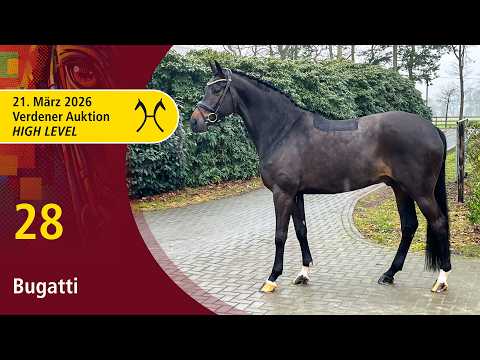 Äußerst ansprechend im Look ist Bugatti: Sein schön geprägter Kopf und die gut bemuskelte Halsung machen ihn zusammen mit dem kompakten und zugleich formschönen Körper zu einem Hingucker im Stall und unter dem Sattel. Er ist im täglichen Training aufmerksam und lässt sich ohne viel Aufwand sowohl in lockeren Bewegungsabläufen reiten als auch in die ausdrucksstarke Präsentation wechseln. Die Lektionen bis zur Klasse S hat sein ständiger Reiter Jan-Dirk Gießelmann dem 14-jährigen Bugatti schon vor geraumer Zeit beigebracht, und so platzierte sich das Paar bis zu diesem Niveau. Der letzte Turnierstart liegt gut fünf Jahre zurück, da die Konzentration des Familienbetriebs Gießelmann immer intensiver auf das Segment der jüngeren Pferde ausgerichtet ist. Daher ist der Zeitpunkt gekommen, dass Bugatti als Schoolmaster in Zukunft einen neuen Reiter begleitet. Die dazugehörige Abgeklärtheit im täglichen Umgang im Stall, sowohl in ruhiger Umgebung als auch bei hoher Betriebsamkeit, rundet seine Eignung positiv ab. Sportname: Bugatti 46 Sporterfolge: RPF: 1/1; 2/4 DRE (Dressur) Klasse M1 (Dre M*): 1/w Klasse M2 (Dre M**): 1/5; 1/w Klasse S1 (Dre S*): 1/3 DPF (Dressurpferdeprüfung) Klasse A (Dpf A): 1/1; 1/5 Klasse L (Dpf L): 1/1; 2/2; 1/3; 2/4; 2/w Klasse M (Dpf M): 1/2 1. Generation Sportpferde Dressur: Quantino 6 v. Quaterback (DRE: M* mit Kevin Riha). Auktionspferde: v. Secret - Rubin-R v. Secret (VA 2025); Vitali 27 v. Vivaldi (FoVA 2017: 38.000 €); Spooky v. Sandro Hit (FoVA 2016); Bailey v. Bretton Woods (VA 2018). Bes. Prämientöchter: HannPrA Freiheit v. Fürstenball. 2. Generation Sportpferde Fahren: Bugatti 52 v. Wolkentanz (Fahren: int. S mit Axel Olin,Nationenpreis Fahren -Vierspänner- -international- 2018). Auktionspferde: Clavigo 16 v. Caprimond (VA 2003). Bes. Prämientöchter: StPr Romantica v. Rubin-Royal. 3. Generation Sportpferde Dressur: Eskamino K v. Estobar NRW (DRE: Grand Prix mit Sina Leuthäußer); Whisper 156 v. Wolkentanz (DRE: Grand Prix mit Isabell Werth,Dressurprüfung Kl. S*** - Grand Prix de Dressage 2010,Dressurprüfung Kl. S*** - Grand Prix de Dressage 2009); Wynona 19 v. Weltmeyer (DRE: S* mit Elisa Tiemann); Sambesi 70 v. Spörcken (DRE: M** mit Lukas Blatzheim); Fabricio 25 v. Fidertanz (DRE: M** mit Lisa Treubrodt). Aufbauprüfungen Dressur: Labadia 2 v. Londontime (DRE: M mit Heinz Croonenbroek); Lennie Loomis v. Livaldon (DRE: L). Auktionspferde: von Conteur v. Conteur (VA 2006); StPr Sunshine K/Savannah 8 v. Sao Paulo (VA 1997); Hallelujah/Halleluja v. Hill Hawk (VA 1995). Bes. Prämientöchter: StPr Leony v. Londonderry. 4. Generation Sportpferde Dressur: Bella Unique v. Bonifatius (DRE: S** mit Katrin Bettenworth); Arosa-A**p-/Arosa 33 v. Rubinstein I (DRE: S** mit Oudewortel,Taco); Empire B v. Einstand (DRE: S** mit Schulze,Michael,HM 1984); Weltino 15 v. Welt Fürst (DRE: S* mit Maj-Britt Wessel); Quadrigo 7 v. Quattro B (DRE: M* mit Nike Josefine Driesen); Silbertau 3 v. Silberschmied (DRE: M* mit Sarah Beck); Rendite/Rendite 7 v. Riccione (DRE: M* mit Franziska Stettner). Sportpferde Springen: nicht gekört/Qinghai v. Quidam de Revel (SPR: int. 1,60 m mit Guido Jun. Klatte,Springprüfung Kl. S -Großer Preis**- 145cm -international- 2022,Springprüfung Kl. S -Großer Preis***- -international- 2022,Springprüfung Kl. S -Großer Preis**- 145cm -international- 2022,Springprüfung Kl. S -Großer Preis**- 145cm -international- 2021,Springprüfung Kl. S -Großer Preis***- -international- 2021,Deutsche Meisterschaft der Springreiter -Wertung- 2021,Springprüfung Kl. S -Großer Preis****- -international- 2021,Springprüfung Kl. S -Großer Preis***- -international- 2021,Springprüfung Kl. S -Großer Preis**- 145cm -international- 2021,Springprüfung Kl. S -Großer Preis**- 145cm -international- 2021,Springprüfung Kl. S -Großer Preis**- 145cm -international- 2020,Nationenpreis Springen Kl.S*** -international- 2020,Springprüfung Kl. S -Großer Preis***- -international- 2020,Nationenpreis Springen Kl.S*** -international- 2020,Springprüfung Kl. S -Großer Preis**- 145cm -international- 2020,Springprüfung Kl. S -Großer Preis***- -international- 2020,Springprüfung Kl. S -Großer Preis****- -international- 2019,Springprüfung Kl. S -Großer Preis***- -international- 2018,Springprüfung Kl. S -Großer Preis***- -international- 2018,Deutsche Meisterschaft der Springreiter -Wertung- 2018,Springprüfung Kl. S -Großer Preis***- -international- 2018,Weltcup-Finale -international- 2017,Springprüfung Kl. S -Großer Preis*****- -international- 2017,Weltcup-Qualifikation Springprfg Kl.S**** -international- 2017,Springprüfung Kl. S -Großer Preis*****- -international- 2017,Weltcup-Qualifikation Springprfg Kl.S**** -international- 2016,Weltcup-Qualifikation Springprfg Kl.S**** -international- 2016,Springprüfung Kl. S -Großer Preis***- -international- 2016,Europameisterschaft der Springreiter JR -Mannsch.- 2016,Europameisterschaft der Springreiter -JR- 2016,Nationenpreis Springen Junge Reiter -international- 2016,Weltcup-Qualifikation Springprfg Kl.S**** -international- 2016,Deutsche Meisterschaft Junge Reiter Springen 2015,Europameisterschaft der Springreiter -JR- 2015,Europameisterschaft der Springreiter JR -Mannsch.- 2015,Nationenpreis Springen Junge Reiter -international- 2015,Nationenpreis Springen Junge Reiter -international- 2015,Springprüfung Kl. S -Großer Preis**- 145cm -international- 2014); Meddalist v. Pius (SPR: int. 1,45 m mit Lotta Strömbeck); Madera/Alexis 219 v. Acolydor (SPR: 1,40 m mit Niclas Aromaa); Ma Belle F v. Montender (SPR: 1,45 m mit Marie-Theres Fischer); Gerry van Boven v. Grey Top (SPR: 1,40 m mit Andreas Barth); Mon Amie M/Mon Amie 86 v. Cacun (SPR: 1,30 m mit Nadja Schmittlein); StPr Marleen/Marleen 20 v. Quidams Rubin (SPR: 1,30 m mit Jörg Schaffner); Cobra 11 v. Cordalme (SPR: M mit Jochen Zeh); Davidoff/Davidoff 104 v. Delphi (SPR: M mit Holz,Thomas); Andiamo 26 v. Acapulco (SPR: M mit Vatter,Carsten). Auf