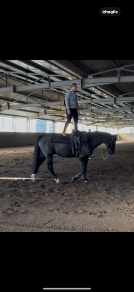 Star-noir è un cavallo Hannover di modeste dimensioni ma con una bella struttura fisica. Clinicamente non ha nulla da evidenziare, eccetto un vizio detto “Ticchio” cioè quando è nel box vuole mordere la finestra. Lavora come cavallo in una scuola di equitazione, ha partecipato a gare di salto ostacoli anche con allievi principianti. Lavora bene in campo e con altri cavalli. Super attitudine al volteggio! Non calcia e non fa scortesie. Si vende perché al momento abbiamo troppi cavalli per la nostra scuola e cerchiamo per lui una nuova casa.