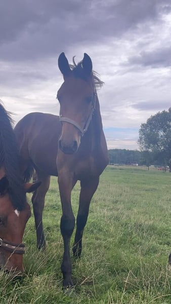 **For Sale: Hanoverian Gelding** For sale is a promising Hanoverian gelding, born in 2023. **Features:** - **Breed:** Hanoverian - **Gender:** Gelding - **Year of Birth:** 2023 - **Color:** Bay - **Height:** 164 cm - **Suitability:** Show Jumping (Dressage) This young gelding impresses with his excellent movements and friendly disposition. He is well-suited for show jumping (also dressage) and already shows a lot of talent and potential. He is growing up in a species-appropriate environment and is well-socialized. If you are interested or need more information, please feel free to contact me. Don't miss this opportunity to acquire a promising partner for the future!