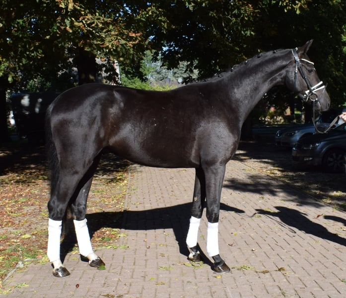 A fantastic schooling horse with great quality for the dressage arena and an unbeatable character! Livaldo is now well-started under saddle and on his way to Prix St. Georges level. He handles his tasks excellently and shows a commendable development through daily training. He has already completed his first outdoor rides. Livaldo is very well-behaved, easy to ride, and eager to learn, making him an excellent choice for amateurs and young riders alike. He is also a genuine sweetheart in handling and is always up for a fun time. Livaldo comes directly from the breeder and was raised in a herd environment. Current very good X-ray images are available. Upon request, we are happy to send you additional training videos.