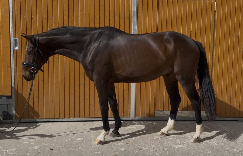 Verkaufsanzeige: Traumhafter Hannoveraner Wallach** Zum Verkauf steht ein vielversprechender Hannoveraner Wallach, geboren im Jahr 2022. Dieser elegante Braune Wallach besticht durch sein harmonisches Exterieur und hat ein Stockmaß von 167 cm. Unser Wallach ist bestens für die Dressur geeignet und zeigt bereits vielversprechende Ansätze in der Ausbildung. Mit seinem freundlichen Wesen und seiner Lernbereitschaft ist er der ideale Partner für ambitionierte Reiter, die ein talentiertes Pferd für den Dressursport suchen. Er ist brav im Umgang, gut erzogen und hat ein einwandfreies Gesundheitszeugnis. Dieser Hannoveraner hat das Potenzial, sich in der Dressur weiterzuentwickeln und viel Freude zu bereiten. Bei Interesse oder für weitere Informationen stehen wir Ihnen gerne zur Verfügung. Mutter Donna Dorrie M : 4. Generation Staatsprämienstute In 2010 4. Platz bei der Friedrich Jahncke Schau in der Abteilung 3-jährige mit Prüfung. Stutenstamm der Antipathie Direkter Mutterstamm (Nachkommen aus der Mutter, Schwester, Tante etc.): - Laeticia Casta, Stute v. Londonderry, S-erfolgreich - Donero von Don Schufro bis Inter** erfolgreich - Boney M. von Bonifatius: 2006 unter Hermann Burger Hannoveraner Championess der 6-jährigen Dressurpferde und später S* St. Georg siegreich und belegte in S** den 5. Platz. - Bourbon v. Bonifatius: 3. Platz im Hannoveraner Championat bei den 5-jährigen Dressurpferden und wurde 7. beim Bundeschampionat in 2006 - Belargio v. Bonifatius S erfolgreich - StPrSt Whoopy von Weltmeyer, 1995 Siegerstute der Louis-Wiegel Schau, wurde in die USA verkauft. Dort mehrfach Championess der Schauen an der Ostküste und brachte hochprämierte Fohlen. - Whoopy II, sowie ein Bruder von Fürst Heinrich sind bis M platziert. - De Beers von De Niro in den USA bis Inter II erfolgreich - Qi Gong von Quaterback Inter I/PSG erfolgreich in den USA Aus Großtanten/Großcousinen: - Why Me von Westerland, Teilnehmer für Japan an den Weltreiterspielen in Kentucky 2010 mit Hiroyuki Kitahara - D'Amour WS von Depardieu S** erfolgreich (31 S-Platzierungen). - WilyFox von Wolkentanz I S-Dr erfolgreich, sowie die M erfolgreichen Pferde Wolkenfee und Wolkenzauber. Weitere Sportpferde aus dem Stamm: Fürst Khevenhüller (Helen Langehanenberg), Hemingway 60 S**** platziert in 2018, Gekörte Hengste aus dem Stamm u.a. Bohemian (Birkhof), Royal Blend, Shakespeare in Love, Don Bedo I + II