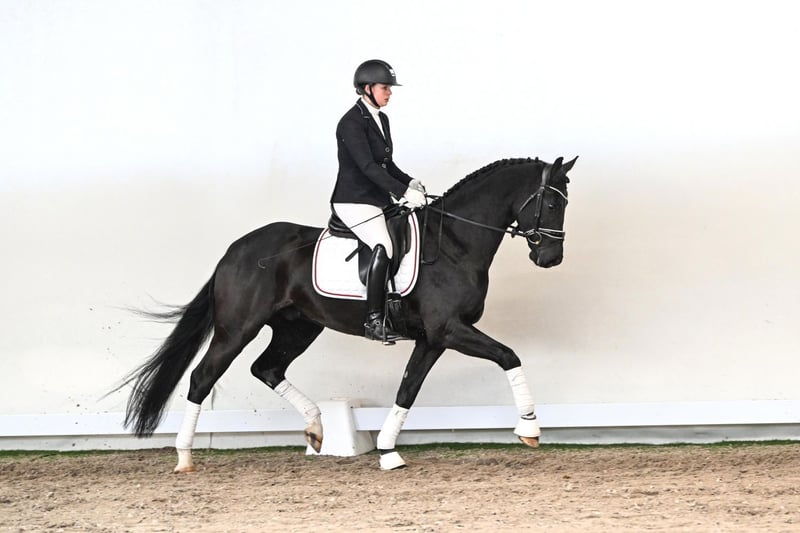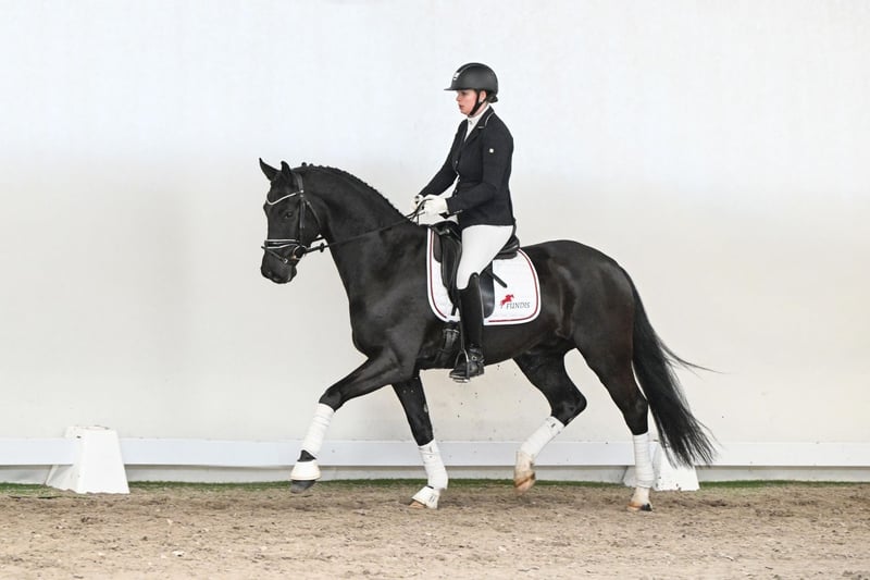 A gelding that immediately catches the eye: the five-year-old Hanoverian Fürst Henry impresses with elegance, natural ease, and a harmonious, uphill movement. Easy to sit, soft on the hand, and consistently pleasant to ride, he offers his rider an exceptionally light and secure feeling from the very first moment. His gaits are defined by a powerful, consistently active hindquarters, a flawless walk, and expressive shoulder freedom in the trot. Built uphill with natural self-carriage, Fürst Henry is a horse that impresses not only with his movement quality but also with his character: attentive, cooperative, and joyful in his work. Pedigree-wise, he combines the finest lines of modern dressage breeding: his sire, Fürst Belissaro, is renowned for rideability, movement quality, and willingness to perform, and himself was awarded the prestigious Weltmeyer Prize. Through his dam’s sire, Fürst Rousseau, he inherits proven genetics from top performance lines, complemented by the legendary Florestan I as his dam’s damsire, whose offspring are known worldwide for rideability, performance, and outstanding gaits. Fürst Henry is a horse that unites rideability, expression, and comfort at the highest level. He captivates in the saddle while showing the potential for a successful sporting future – a gelding to ride, feel, and truly experience.