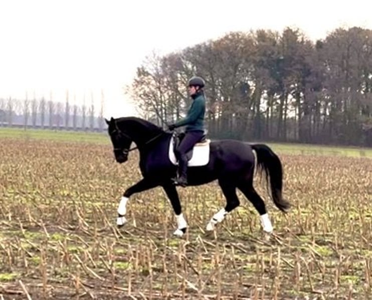 Gelding van Bon Joker - Swarovski, 4 jaar, 177 cm, 19.000 Euro BV Prachtige en charmante gelding van de Oldenburg premiumhengst Bon Joker. Zeer eenvoudig en sociaal, leergierig, met losse, krachtige beweging en goede kwaliteit in alle drie de basisgangen. In de afstamming komen belangrijke dressuurverervers voor zoals Bon Coeur, Fürstenball, Sandro Hit en de elitehengst Caprimond. Direct van de fokker met turniersuccesvolle broers en zussen, opgeleid op dressuurpaard A-niveau. Al goedgekeurd. Voor vragen graag via WhatsApp of telefonisch 01602428444.