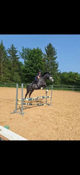 Kano ist ein absoluter Traum von Pferd. Er lässt absolut keine Wünsche offen. Ich habe Kano als Fohlen gekauft und selber angeritten. Er ist mittlerweile 6 Jahre alt und dem Alter entsprechend ausgebildet. Er hat noch nie schlechte Erfahrungen gemacht und ist ein absolutes Verlasspferd. In Dressurpferde A war er letztes Jahr ein absoluter Schleifensammler und ist kein Turnier ohne heim gefahren. Mit Noten bis 8,7 konnte er sich öfters den Sieg holen. Wir haben spielerisch die Lektionen der Klasse L angefangen und Kano konnte sich direkt in seiner ersten Dressurpferde L auf dem 4. Platz platzieren. Kano besticht durch seinen schwungvollen Trab, einem immer taktsicheren und großen Schritt mit viel Übertritt und dem bekannten großem Secret-Galopp. Aber nicht nur in der Dressur ist er ein absoluter Strahlemann. Im Springen zeigt er ebenfalls viel Talent was jedoch nie gefördert wurde da ich einfach zu 100% Dressurreiter bin. Kano ist auch im Umgang einfach ein wahrer Schatz Egal ob ausreiten, spazieren, stundenlanges kuscheln oder mit Anfängern durch ihre ersten Reiterwettbewerbe oder Springreiterwettbewerbe laufen. Er macht einfach alles mit. Perfekt für jedermann egal ob Sportreiter oder Einsteiger. TÜV aktuell noch keiner vorhanden. Für ein Probereiten wird eine Gebühr von 40€ verlangt die selbstverständlich mit Kauf angerechnet wird.
