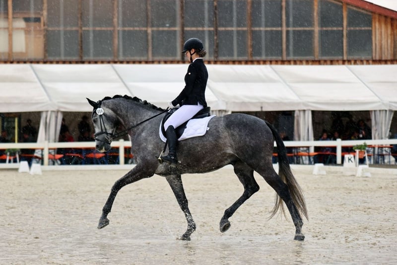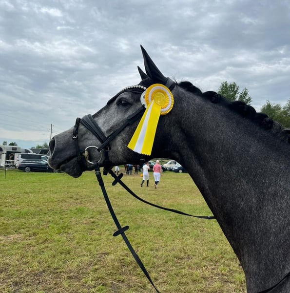 Kano is an absolute dream horse. He leaves nothing to be desired. I purchased Kano as a foal and have ridden him myself. He is now 6 years old and appropriately trained for his age. He has never had any negative experiences and is a completely reliable partner. Last year, he was a top performer in Dressage Horse Class A, consistently earning ribbons and never returning from a competition without a prize. With scores up to 8.7, he often secured victory. We have casually started working on the exercises of class L, and Kano was able to place 4th in his very first Dressage Horse L test. He impresses with his expressive trot, always secure and large steps with plenty of overreach, and the well-known extended canter. But he is not only a star in dressage. In show jumping, he also shows great talent, although this has never been specifically trained, as I am solely a dressage rider. Kano is also a true treasure in handling. Whether hacking out, going for walks, hours of cuddling, or competing with beginners in their first riding or jumping competitions—he handles everything with ease. Perfect for everyone, whether competitive rider or beginner. Currently, no TÜV is available. For a trial ride, a fee of €40 is required, which will be credited towards the purchase if you decide to buy.
