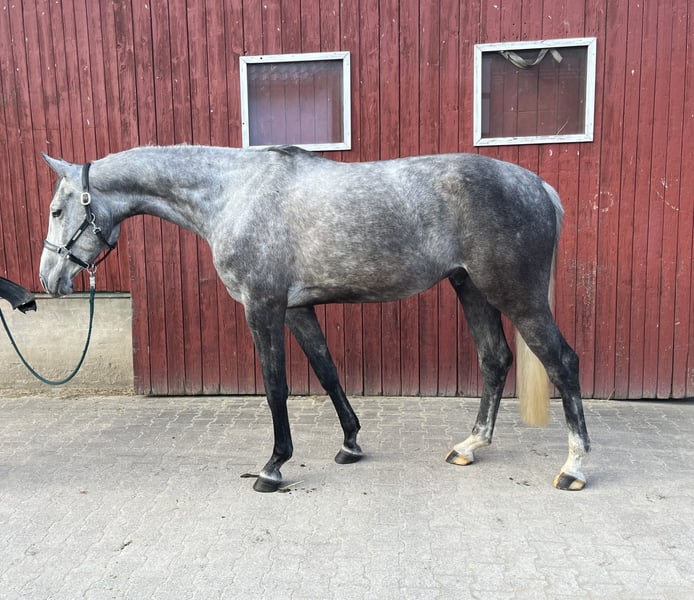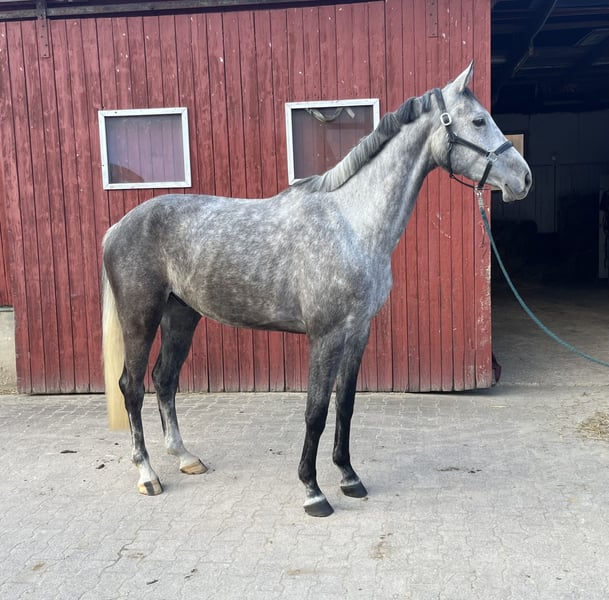The horse is a 7-year-old gelding by Diacontinus out of Silvio. Gustav was briefly backed at age 5 but then not further trained. He has been in work again for nearly three months. During this time, he has proven to be well-behaved and motivated under saddle in the indoor arena, on the riding surface, and in the field. In free jumping, he shows a lot of potential and has recently completed his first small jumps under the rider.