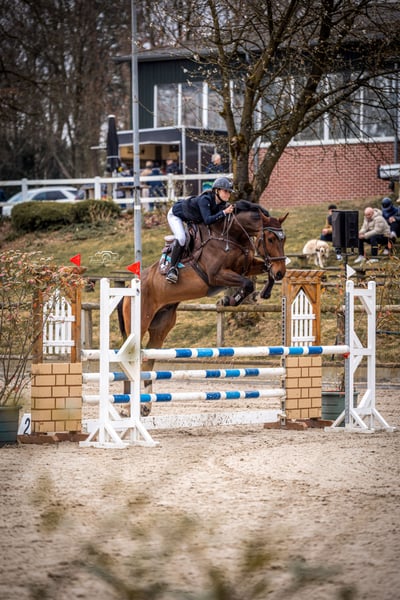 We are offering a very wealthy and careful jumper from a first-class breeding line. Calle Cacao came to us as a very raw 6-year-old and was further trained by a professional a few months later The seven-year-old son of Casalido out of a Cassini II dam has already been placed in tests for young show jumpers up to medium (M*) level. The large-framed gelding needs more time to find his body due to his size. With the right support, all doors will then be open to him at advanced level. He is ideal for the larger rider. If you prefer an absolutely uncomplicated horse with a little less "go", whether in handling, cross-country or transportation, this is the right horse for you. Treadmill, horse walker, meadow - no problem for him. He likes large arenas and is already familiar with Peelbergen and Green Valley. Calle Cacao was originally intended as another amateur horse for my son. However, he will be taking at least another year off the sport due to his studies. It is therefore with a heavy heart that we are now offering him for sale. The bay gelding was checked by our vet and the physiotherapist last year, including x-rays, with no findings. Please contact us if you have any further questions. He can be tried out at your leisure at our private facility in Wachtberg near Bonn.
