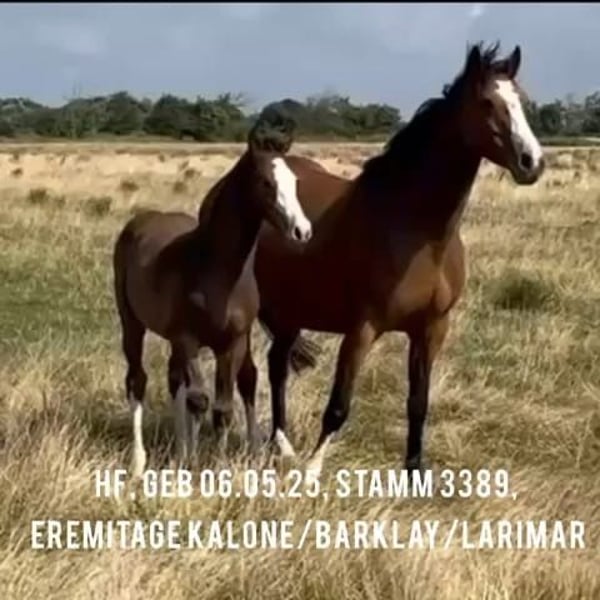 À vendre : ce foal stallion Ermitage Kalone-Barcley, issu de la lignée maternelle directe de Cassini I. N'hésitez pas à nous contacter par téléphone pour plus d'informations. CONTACT : Heiko Clausen Tél. : +49 171-2341295