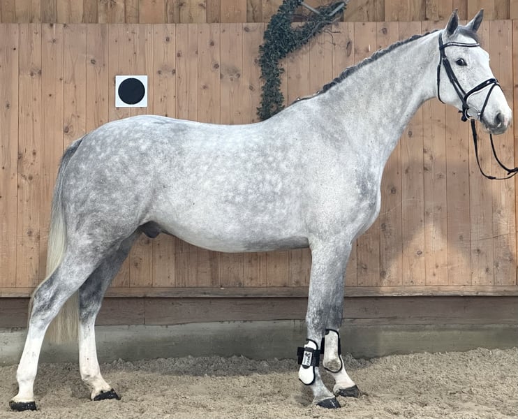 Sehr schöner und großrahmiger Wallach der mit außergewöhnlich vielen Springvermögen ausgestattet ist . Er ist einfach und solide zu reiten , und zeigt sich bei seinen täglichen Aufgaben immer sehr lernwillig und brav .