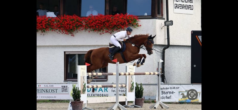 11-jährige Holsteiner Stute von Leovisto x Contendro I – erfolgreich bis M**, top Amateur- & Profipferd Zum Verkauf steht eine 11-jährige Holsteiner Stute von Leovisto aus einer Contendro I-Mutter. Eine Stute mit sehr guter Abstammung, viel Vermögen am Sprung und einem äußerst angenehmen Charakter. Die Stute überzeugt mit einem guten, durchdachten Sprungablauf, Übersicht und viel Potential. Sie wurde ausschließlich von mir als Amateur geritten und stets altersgerecht, schonend und mit viel Gefühl ausgebildet. Aufgrund ihrer Einstellung ist sie sowohl für ambitionierte Amateure als auch für Profis ein verlässlicher Partner im Sport. Sportlich ist sie aktuell bis 130 cm (M) platziert** und M (125 cm) siegreich*. Dank ihrer hochwertigen Abstammung und der sportlichen Erfolge ist sie zudem sehr interessant für die Zucht. Wir haben die Stute 4-jährig direkt vom Züchter erworben und sie seitdem selbst ausgebildet und kontinuierlich gefördert. Charakter & Umgang * ausgeglichen, ehrlich und sehr lieb im Umgang * geländesicher * schmiede- und verladefromm * leistungsbereit, dabei stets klar im Kopf Ein absolutes Verlasspferd mit Perspektive, das durch Qualität und Charakter.
