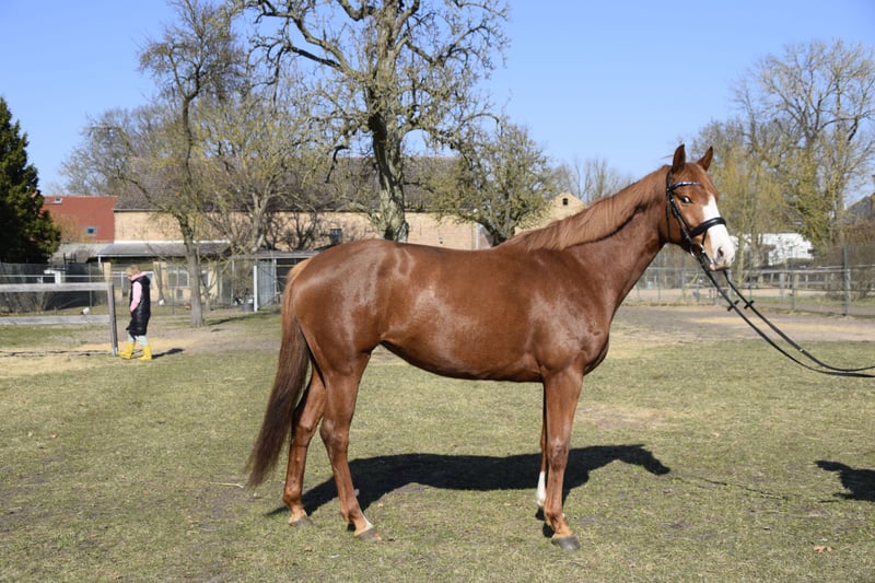 Das ist Ora sie ist eine Holsteiner Stute aus April 2021. Ora ist super lieb im Umgang. Sie lässt sich problemlos ohne Peitsche longieren, ist lieb beim putzen, sowie beim Tierarzt und Schmied. Sie zeigt dabei keine Unarten und ist verträglich mit anderen Pferden. Allerdings ist Sie dem Reiter gegenüber immer wieder skeptisch und unsere Gegebenheiten passen leider nicht zum Pferd. Generell steht sie super und fein an den Hilfen, lässt sich ohne Hilfsmittel reiten und ist lernwillig. Allerdings benötigt sie eine ruhige Umgebung für den Alltag. In ihrem Fall eine Halle, um ihr die nötige Sicherheit und Abschirmung von zu viel äußeren Reizen zu geben. Diese ist bei uns leider nicht gegeben, wodurch wir uns für einen Verkauf entscheiden müssen. Aufgrund Ihrer Skepsis dem Reiter gegenüber verfällt sie bei einem Schreck und zu vielen Reizen, wenn jemand drauf sitzt in Angst. An der Longe etc. ist dies allerdings kein Problem, da sie generell ein mutiges und neugieriges Pferd ist. Wir denken, dass dieses Problem in anderen Händen und Rahmenbedingungen gut händelbar und lösbar ist. Dann wird sie ein schöner Sport Partner sein mit dem man viel Spaß haben kann. Gelegentlich koppt sie. Bei uns haben wir das nur gesehen als Sie in der Box ein Leckerli bekommen hat. Beim normalen füttern ebenfalls nach dem Kraftfutter macht sie dies bei uns nicht. Bei Interesse rufen sie gerne +49 151 74521056 an.