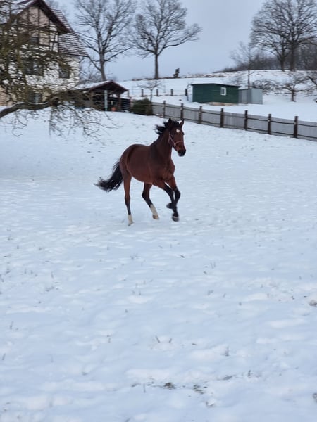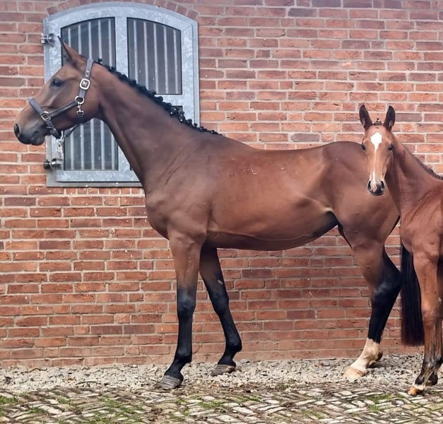 Angeboten wird die Holsteiner Bezirksprämienstute Olivia KM von Hickstead Blue x Comme il faut x Caretano aus dem Stamm 104A, geboren am 10.04.2021. Die Stute hat in 2025 ein prämiertes Stutfohlen von Cascadello I (s. Bilder) gebracht, welches in Spanien einen Stall gefunden hat. Die Stute ist nun bereit ihr sportliches Potential zu zeigen. Olivia KM hat diesbezüglich noch keine Ausbildung erfahren, weshalb sie ausdrücklich als "roh" verkauft wird. Im Rahmen ihrer Stuteneinrragung wurde sie mit einer Größe von 1,69 m gemessen. Der Vater Hickstead Blue, ein beeindruckender Westfale aus dem Jahrgang 2016, hat sich sowohl im Sport als auch in der Zucht einen Namen gemacht. Mit über 20 Platzierungen in 35 Starts zeigt er seine Vielseitigkeit und Leistungsbereitschaft. Unter Marie Ligges gelang ihm ein Sieg in einem internationalen M*-Springen. Unter Nico Lupino setzt er diesen Weg fort. Als Siegerhengst ausgezeichnet, überzeugt Hickstead Blue mit seiner Vererbungskraft. Besonders hervorzuheben ist seine Abstammung. Sein Vater, Hickstead White, ein Oldenburger Springpferd, und sein Muttervater, der renommierte Chacco-Blue, tragen zu seiner herausragenden Genetik bei. Aus der Ururgroßmutter Danett entstammen die gekörten Hengste Alcatraz (von Accord II), Amidou (von Alkatraz), WT Lillix (von LioCalyon) und WT Lakota (von LioCalyon) mit Drew Weber. Die Urgroßmutter Isett brachte die Springpferde Quicky H (von Quick Star) mit Tina Deuerer, Campino H 2 (von Calato) mit Petra Püttmer, Casino Royale 17 (von Calato) mit Dr. Dominik Roeder, Cendrillon Marron (von Coriano) mit Josefine Martinello, Zalazar D (von Zinedine) mit Noa Ben Zeev und Victoria D (von Vagabond de la Pomme) mit Tamina Seibold. Aus der hochinteressant gezogenen (8x Ramzes AA) und fruchtbaren Großmutter U-Careta entstammen inzwischen 9 Pferde, darunter die in der Vielseitigkeit in den USA sehr erfolgreichen Friday (von Chin Champ) mit Adisso Hagan und Clueso (von Clarimo) mit Maya Clarkson. Die Mutter Holly KM musste wegen einer Verletzung bereits früh in die Zucht wechseln. Sie erhielt ebenfalls eine Bezirksprämie und brachte bislang 5 Fohlen, 4 davon prämiert. Die Geschwister zeigen sich im Umgang durchweg freundlich, aufgeschlossen und zuverlässig. Olivia kann bei Interesse gern vor Ort besichtigt werden. Ihr in 2025 geborener Halbbruder von Million Dollar ebenfalls(s. weitere Anzeigen). Auch die Mutter Holly KM kann besichtigt werden. Weitere Informationen auf Anfrage. Transport ggf. nach Absprache möglich.