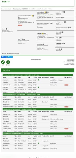 Yegua Holstein de 5 años con excelente linaje en venta Noni 11 1.69 m de altura Halifax van het Kluizebos x Canturo x Corofino I Holstein: línea 18b1 (Toronto Raptor & Barbara Schnieper, Locanto RN & Ales Opartny) Maneja con confianza, aunque aún está algo verde en los saltos Movimientos cómodos y enérgicos, especialmente en trote y galope. Radiografías de octubre 2023, incluyendo la espalda Los dientes han sido revisados Bonitos cascos y buenas piernas Videos y fotos disponibles en WattsApp Venta privada, sin garantía ni devolución.