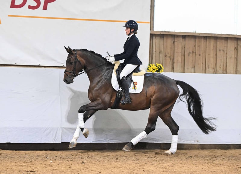 Oto link do kolekcji i rejestracji online: https://auktion.pzvbw.de/auctions VAT 0% Klacz o talentach do ruchu i skoków z najlepszej hodowli. Jej matka, która odnosiła sukcesy w jeździectwie wszechstronnym, wydała na świat cztery międzynarodowe konie skokowe z sukcesami do 1,60 m. Po urodzeniu dwóch źrebiąt, zakończyła swój pierwszy sezon startowy. Zwyciężała w konkursach dla młodych koni skokowych i zajmowała miejsca w konkursach dla młodych koni ujeżdżeniowych oraz w konkursach terenowych.