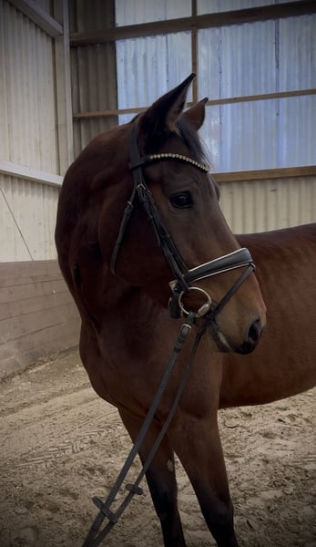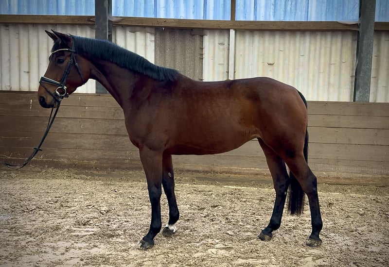 For sale: Nancy Sofia *2020, sired by Castle Creek out of Cassini I, by Lennon, bred by Claus-Wilhelm Hagge in Schülp (Dithmarschen, Schleswig-Holstein), Stamm 1866. Her dam, Cristina Sofia, can produce multiple offspring with S-class placements (https://www.horsetelex.de/horses/pedigree/2178960/cristinasofia). Her sire, Castle Creek, has competed successfully up to 1.45 m in show jumping. In addition to her impressive pedigree, Nancy captivates with her elegant appearance and above-average movement. Standing at 1.70 m, she is suitable for larger riders. She was backed at age five and demonstrates a very willing attitude and good learning ability under saddle. She is now beginning to jump her first fences under rider. A current health certificate (AKU) is available, and photos can be viewed. She is currently in professional training, so the price will increase with ongoing education. Please contact me via WhatsApp, as I am difficult to reach by phone: 01746979531.