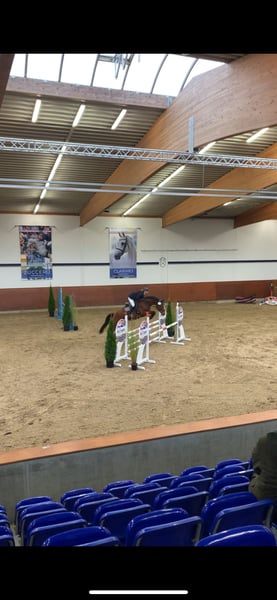 Attention show jumpers! For sale is an 8-year-old mare by Quasimodo vd Molendreef x Cascadello. Quanja is approximately 1.67m tall and is currently successful at M* level. Quanja is uncomplicated to handle and clear-headed; even after a few days of rest, she can be ridden again without any issues. She is familiar with box stalls, as well as open stabling and pasture. Currently, she is in an all-mare herd and has never had any problems in any herd. She is currently barefoot but is also accustomed to being fully shod. Quanja is looking for an experienced and confident rider; she is definitely not a horse for beginners or re-riders. Her current rider compares the feeling in the course to "flying." She took over the mare a year ago and was able to achieve her first successes shortly after a brief acclimatization period. Unfortunately, the rider's personal circumstances have changed, and she must part with Quanja. Now, here comes the little BUT… Quanja had a gastric ulcer in the past, which has been fully treated; however, she requires permanent access to hay and should not have long breaks between meals. If you have read this far and have the right home for Quanja, please feel free to get in touch. To avoid riding tourism, we would like to charge €30 for trial rides, which will be deducted from the purchase price.