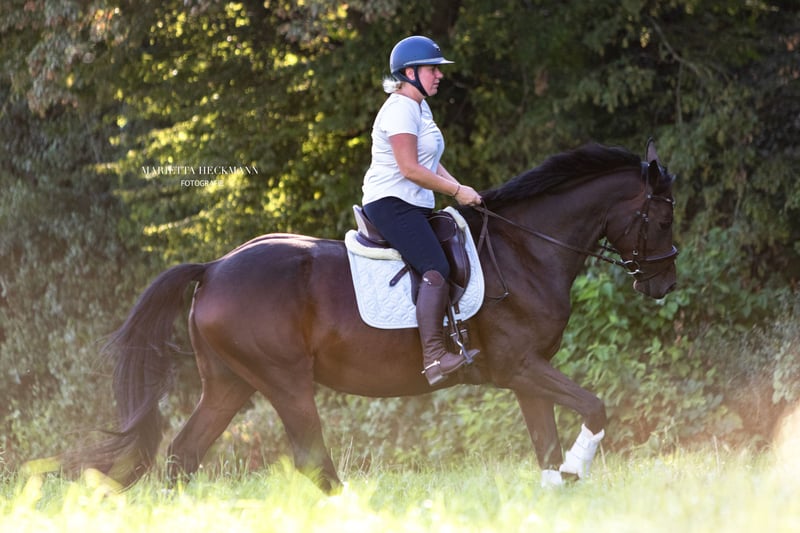 Ich verkaufe meine 9jährige Holsteiner Stute abstammend von Diamar x Con Air als Zuchtstute. Kaida wurde von mir als Amateur angeritten und ausgebildet, später vom Profi im Springen ausgebildet und sehr erfolgreich in Springpferdeprüfungen bis zur Klasse M mit Bestnoten bis 8,8 vorgestellt. Sie siegte mehrfach und war immer garantiert unter den ersten vier Plätzen! Sie entwickelte einen großen Ehegeiz und beeindruckte durch das überdurchschnittliche Öffnen und der Elastizität ihrer Hinterhand. Trotz ihres wahnsinnigen Potenziales blieb sie gleichzeitig absolut Amateurgeeignet und sprang hier mit mir aus allen möglichen Distanzen. Im Sattel ist sie eine absolute Lebensversicherung, im Umgang doch sehr „Stute“. Tierarzt/Schmied immer top 👍 Gelände/ Schrecktrainings alles top. Verletzungsbedingt fällt sie nun seit Juli aus. Ich hatte erst überlegt selbst ein Fohlen aus ihr zu ziehen, aber da ich ein weiteres Pferd besitze ist mir das einfach nicht möglich. Daher möchte ich sie gern als Zuchtstute abgeben. Die Vorgeschichte wird offen kommuniziert. Es ist nicht ausgeschlossen das sie wieder reitbar wird, aber es sollte auch klar sein, dass sie nicht für den großen Sport nach der Verletzung geeignet ist. Sie geht nur in ein 5* Zuhause mit Besuchsrecht! Sie hat damals in einer großen Herde im Offenstall gestanden und zeigte sich hier sehr selbstbewusst und eher ranghoch. Aktuell lebt sie in Boxenhaltung mit tgl. Paddock (Winter)/Koppel (Sommer). Wir beginnen gerade mit dem angrasen.