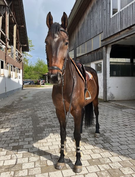 Holsteiner gelding with good pedigree seeks loving home I am selling my lovable Holsteiner gelding with a very good pedigree. He has been successfully placed in show jumping up to M level, but is no longer jumping due to Kissing Spines. He is still well-suited for leisure activities, groundwork, gymnastics, and dressage work. He enjoys moving, loves to work, and is always well-behaved, people-oriented, and uncomplicated in daily handling. Unfortunately, I have to part with him at the end of the year due to time constraints and wish for him a loving home without performance pressure, where he can enjoy the rest and attention he deserves. For serious inquiries, I am happy to provide more information, videos, and current pictures. Saddles and other equipment are also available. WhatsApp: +49 171 8126720
