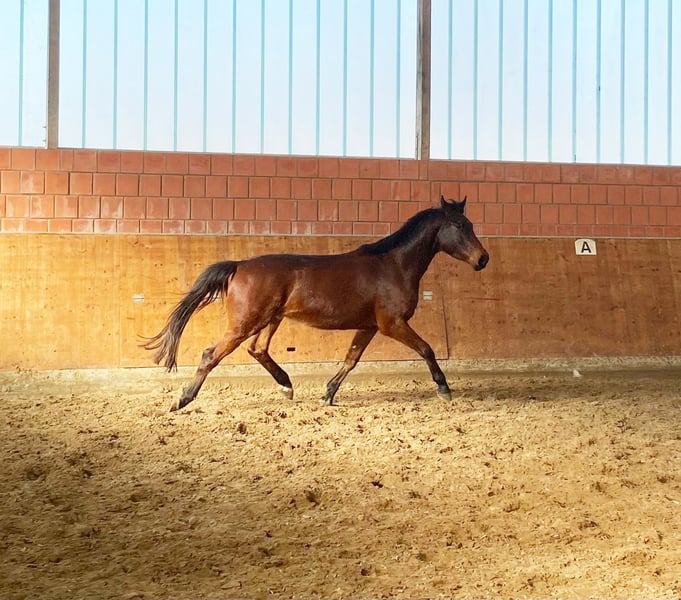 Typvoller, großrahmiger 4-jähriger Wallach von Charaktervoll HV x Colman Dieser ansprechende 4-jährige Wallach mit einem Stockmaß von 169 cm präsentiert sich als sympathisches Nachwuchspferd mit sehr angenehmem Charakter, guter Einstellung und unkomplizierter Art im täglichen Umgang. Beim Freispringen zeigt er bereits Vermögen, Übersicht und eine gute Manier und empfiehlt sich damit als interessantes Pferd für die weitere Ausbildung. Abstammung: Vater ist Charaktervoll HV, erfolgreich bis 1,45 m im Springsport, ein Sohn von Comme il Faut. Mütterlicherseits führt der Wallach über Colman (v. Carthago x Lord) wertvolle Holsteiner Leistungsgenetik. Die Mutter Donata I wurde mit der Bezirksprämie ausgezeichnet und ist Halbschwester zu Springpferden bis 1,50 m in direkter Linie, darunter Elysee und ist Vollschwester Bleckert Boy. Das Pferd wurde 2024 vor der Aufstallung röntgenologisch untersucht und als gut befunden. Weitere Informationen oder Besichtigung gerne auf Anfrage.