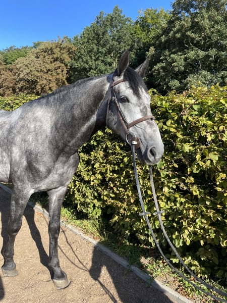 Zum Verkauf steht der 4jährige Holsteiner Wallach “Chrischan” (Clarimo x Clarcone). Chrischan überzeugt mit seinem Charakter und seiner Rittigkeit innerhalb und außerhalb des Parcours. Durch seine 3 sehr guten Grundgangarten ist er auch für vielseitig ambitionierte Reiter*innen interessant. Trotz seiner Größe präsentiert sich Chrischan ausgesprochen umgänglich und rittig. Seine gute Erziehung und sein ausgeglichener Charakter machen ihn auch für feinfühlige oder zierlichere Reiter*innen interessant. Diese Saison Springpferde A* platziert. Springpferde A** vorgestellt. Im Training Parcours bis 115 absolvier Auf dem Geländeplatz zeigt er sich stehts mutig und leistungsbereit. Er eignet sich sowohl für den ambitionierten Amateur als auch für den professionellen Reiter, der einen zuverlässigen Partner für den Springsport und/oder die Vielseitigkeit sucht. Schmiedefromm Verladefromm Geht in Gruppe ins Gelände derzeit barhuf Geimpft Entwurmt TÜV von 2022 vorhanden ohne Befund Videos auf Anfrage auf WhatsApp Bei weiteren Fragen sind wir jederzeit telefonisch unter 01777285539 erreichbar