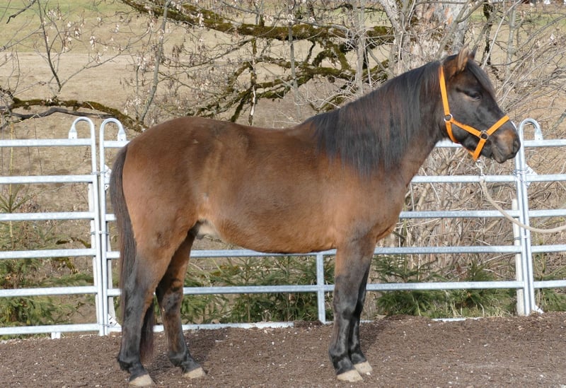 Huzule Wallach 5j. Dunkelbraunfalbe Stm. 143cm. rahmiger, kompakter, hübscher Typ mit guten GGA und viel Ausstrahlung; geritten und gefahren; sicher im Gelände, er besticht durch seine Selbständigkeit und seinen Mut bei der Arbeit; gehorsam im Umgang, - Ein zukunftspferd, der auf der Suche nach seinen Bezugspersonen ist!, schmiede u verladefromm, für Offenstall geeignet, in der Herde verträglich