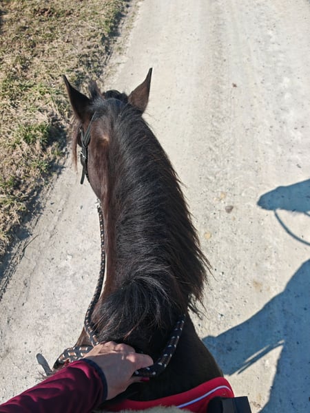 Asterix ist der perfekte Begleiter für jemanden der hauptsächlich ins Gelände gehen will und die Natur genießen möchte. Er ist dort absolut unerschrocken, liebt Wasser und ist motiviert. Er ist so brav, daß ich aktuell sogar mich gebrochenem Bein mit ihm Schritt Ausreiten gehe. Bei uns kommt er Barhuf gut zurecht und soweit wir wissen hatte er auch noch nie Eisen. Am Viereck/Halle blockiert er leider komplett, da möchte er nicht arbeiten. Laufen lassen und ein klein wenig Bodenarbeit, habe ich mit ihm aber schon erarbeiten können und ich denke das der passende Mensch da auch sicher noch etwas mehr rausholen kann. Jedoch sollte das Hauptaugenmerk auf Ausritten liegen. Asterix lebt im Offenstall in gemischter Herde. Hier ist er eher Ranghoch und bevorzugt eher mehr als wenige Pferde. Leider Koppt er, daß haben wir bisher nicht verändern können. Außerdem ist er im Umgang ein kleiner Grantler, weswegen er bei mir den liebevollen Spitznamen Grantelbart hat😅 Dazu bei Interesse gerne mehr. Auch wenn bei mir im Gelände auch mal die Kids drauf sitzen, gebe ich ihn nicht als Kinder/Anfänger Pferd ab, aufgrund seiner Art im Umgang. Beim Putzen, Hufschmied, Waschen, Sattel etc ist er super brav. Ich verkaufe ihn nur weil ich bereits 5 Pferde habe und er derjenige ist der bei mir zu kurz kommt, worunter er leidet. Er will seine feste bezugsperson haben und regelmäßig raus gehen.