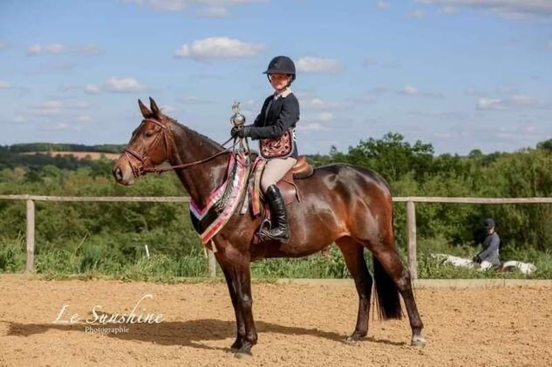 ISH 163cm 2015 Dark Bay Mullaghdrin touch the stars (touchdown x Irco Mena) X Olympic Lux X Harlequin du Carel Beautiful easy mare with a huge jump and great potential for jumping and Eventing. This mare has been produced in a small professional yard very slowly and correctly , never been pushed hard, worked too hard or over faced so while she is 8 , she has not done half the work of your regular 9 year old jumping horse. Jumping easily around a 1 .20m course and now eventing , also competed in working hunter and showing , she’s a clear judges favourite. For sale sadly due to huge lack of time and facilities of owner, No vices at all, easy to clip, farrier, load, travel, hack alone or in company. Barefoot currently with great feet. Everything available to view and try if you can travel to the yard. Potential buyers need to WhatsApp us a video of their riding ability through to 00353879297498 so we can assess suitability. Located South West France. Worldwide shipping available please contact us for a quote.