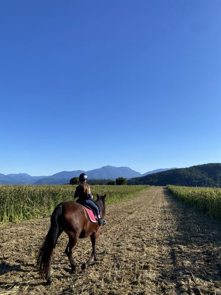 Hallo Zusammen, da ich aufgrund meiner Weiterbildung nicht wie bisher jeden Tag in den Stall komme, suche ich eine Reitbeteiligung. Meine Schöne wird 1 mal wöchentlich von meiner Trainerin trainiert. Sie liebt Ausritte total gerne aber fühlt sich alleine nicht so wohl. Wenn jemand zu Fuß mit ist, freut sie sich und sie hat gleich mehr Sicherheit. Wir waren alleine trotzdem schon gut unterwegs. (Wir haben wunderschöne Ausreitwege) Im Viereck ist sie stets bemüht und versucht zu gefallen. Sie reagiert sehr fein und versucht das gewollte schnell umzusetzen. (Wir haben auch ein riesiges Sandviereck) Bei der Bodenarbeit macht sie auch total gerne mit. Ich suche für sie jemanden der gut reiten kann und sich auch gut durchsetzt da sie schon auch austestet. Sie ist kein Anfänger Pferd. Sobald du ihr klare Regel und Hilfen gibst funktioniert es ganz toll. Es besteht auch die Möglichkeit 1 mal die Woche im Stall zu misten für quasi einen Teil des Geldes. Gerne mehr Infos bei Interesse. Ich freue mich von dir zu hören :)