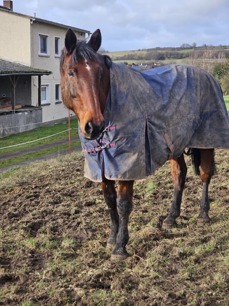 Companion Horse Seeking a Loving Home Due to personal circumstances, we are offering our 22-year-old gelding for rehoming. He stands approximately 16.1 hh and is absolutely well-behaved and easy to handle in daily interactions and within the herd. He is familiar with guided children's riding and does not make any mistakes around children. He can be handled by children at any time, and very young children can pass underneath him safely. He is barefoot with excellent hooves. Theoretically, he is still suitable for riding but would need regular work to maintain this. Currently, he is lunged once a week with children. Due to age, he has osteoarthritis in the fetlock joint, but he still moves well on soft ground, which is crucial for him given his condition. He does not require supplementary feed; hay alone is sufficient 24/7. He is uncomplicated in terms of diet and has always tolerated his feed well. He is used to being alone. Ideal as a companion horse, for example, for a second horse where he might need to stay alone temporarily. He does not cope well with large herds or constant chasing by other horses – this is unfortunately the current reason for rehoming. He is only available for placement in an open stable. He has been in my possession for 8 years; he has never been ill, only once experienced a throat blockage from dry muesli, after which he receives soaked feed to prevent this. The asking price is a "donation" towards his tack; otherwise, we are simply looking for a good home and do not want money.