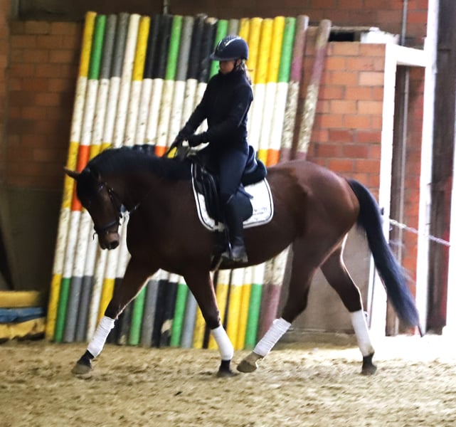 Irish Sport Horse Gelding – Perfect for Leisure and Hobbies! For sale is a beautiful bay Irish Sport Horse gelding, born in 2020. Standing at 16.1 hh, he offers an ideal size for versatile leisure activities. His friendly nature and pleasant demeanor make him a reliable partner for riders of all experience levels. The gelding is healthy, well-trained, and shows excellent manners both on the ground and under saddle. He is perfectly suited for leisure riders seeking a loyal companion to explore nature or enjoy fun rides in the countryside. If you are interested or need more information, please feel free to contact me. A meet-and-greet is possible at any time! Partially shod A recent clinical examination is available We wish you a Merry Christmas and a Happy New Year! Phone: 01722734811 Please contact me if interested – I look forward to your message!