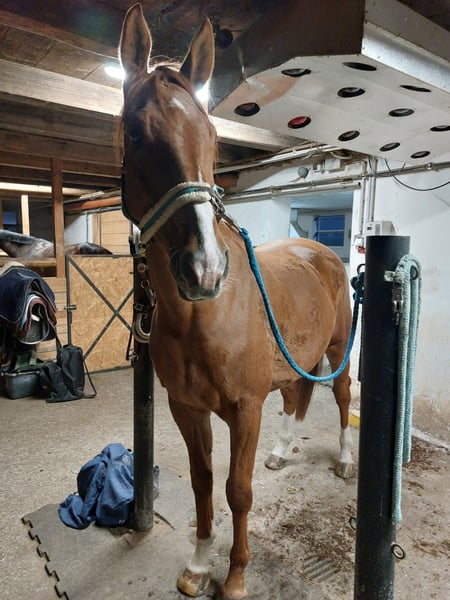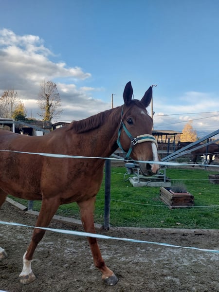 Luis steht am Anfang der Ausbildung, ist ein dressurgezogener Irischer Warmblut-Wallach, sehr sportlich und auch sehr zutraulich und verschmust. Aufgrund des Alters besitzt er viel Energie. Er freut sich auf eine Person, die ihn 3 - 4 x pro Woche fordert. Wir freuen uns auf Anfragen!