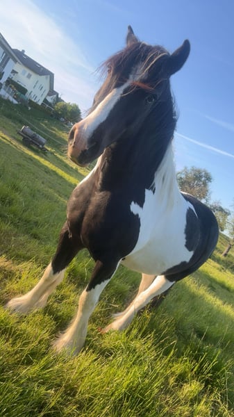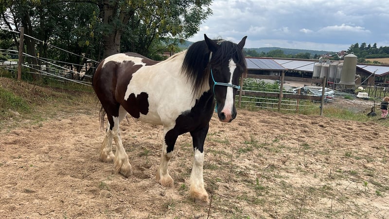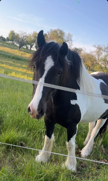 Cailan is an eight-year-old, sweet, charming, and sensitive Irish Sport Horse Cob gelding (1.56 m) with a strong character and a willingness to work. He opens his big heart to the person he trusts once that trust has been established. Cailan is seeking new, responsible owners who have the time, patience, and know-how to grow together. Training level: • Currently lightly backed. Further progress should be made with experienced, gentle guidance and ongoing training. • Not suitable for beginners! Cailan needs a calm, reliable handler to ensure safety. He is attentive in handling but unsure in new situations, requiring patience and sensitivity from his new person. • Consistent groundwork, holistic exercises to strengthen trust and bond, and a long-term, fair, clear partnership based on respect and safety will surely make Cailan a dependable leisure partner. Unfortunately, he has not had the time or expertise for this so far. • Cailan has never been ill, has good hooves, is farrier- and loading-friendly, and tolerates 24/7 turnout. He is familiar with open stall management and paddock boxes. Cailan is looking for: • A 5-star home with regular activity, fairness, and clear leadership. • A patient and experienced person. ! No inquiries from dealers or riding schools! If interested, I am happy to meet you. Absolutely priority goes to the right home over price!